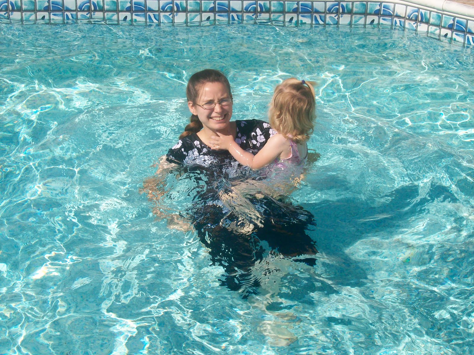 I picked the Tropical Sands style, with a seam at the waistline. I also wanted a black fabric, as I know it has a more slimming look. Since I've had four babies in 6 years, my tummy definitely has a mommy look to it! I was really pleased with how well it fit, and how cute it is! We all were excited to have a reason to go swimming, so we asked some friends of ours if we could come and swim in their swimming pool. It did take a little bit getting used to swimming with a skirt on, but I felt comfortable wearing it. It didn't have a heavy feeling to it, and it was really easy getting in and out of the swimming pool in it. The suit is double layered with fabric, but I felt most comfortable in wearing a bra with the swimsuit as well.